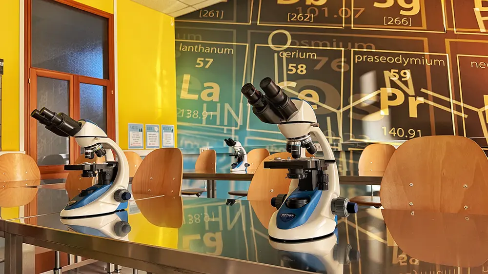 Il laboratorio di scienze e biologia, uno spazio che rende la didattica più concreta, osservabile e coinvolgente. La presenza dei microscopi richiama immediatamente il valore dell’osservazione diretta, della verifica sperimentale e del metodo scientifico. Per gli studenti, un ambiente di questo tipo significa poter integrare lo studio teorico con attività pratiche, sviluppando curiosità, rigore, capacità di analisi e collegamenti interdisciplinari. È una scelta che rafforza il principio del learning by doing.