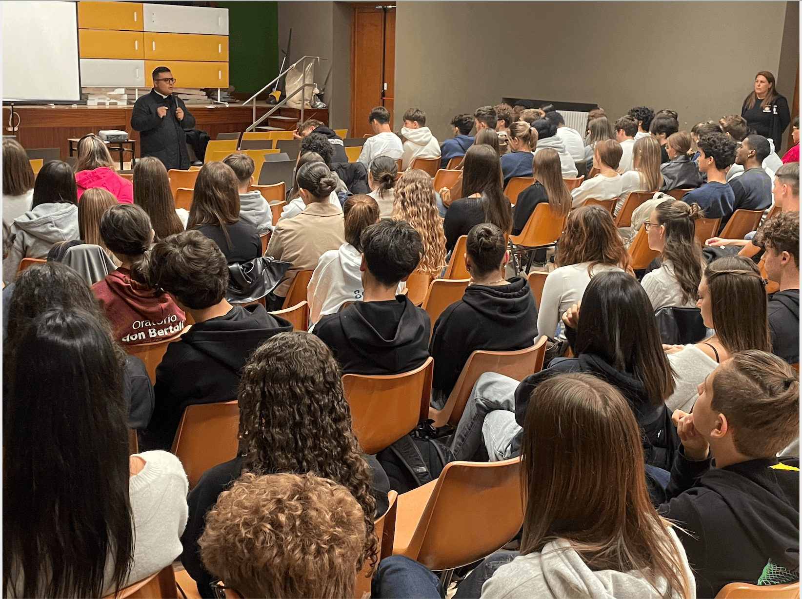 La settimana dei licei si è aperta lunedì 29 settembre con un “Buongiorno” speciale: ospite dell’incontro è stato don Francesco Fittipaldi, incaricato dell’oratorio parrocchiale e conosciuto da tutti come don Fitti, che ha condiviso con studenti la sua testimonianza di vocazione. Il suo racconto, semplice e profondo, si è intrecciato con la tematica che stiamo affrontando in questo periodo: il dubbio come verbo della fede. Don Fitti ha invitato i ragazzi a non chiudere i propri interrogativi “nelle stanze segrete” del cuore, ma a portarli alla luce, metterli davanti agli occhi, perché solo così possono diventare occasione di crescita e ricerca.