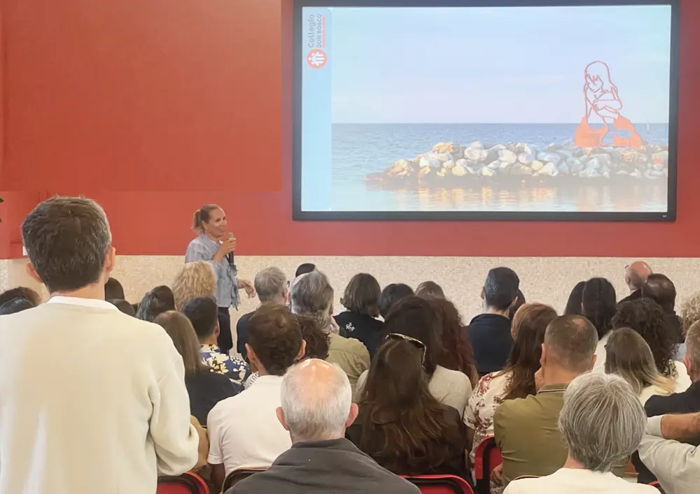 Per ispirare il primo collegio docenti, la Preside Emanuela Negri ha presentato l’opera “Non basta il canto delle sirene”. La scultura monumentale dell’artista piemontese è stata inaugurata lo scorso 7 agosto ed è collocata sulla banchina del porto canale tra Cervia e Milano Marittima. Una visione suggestiva, soprattutto al tramonto quando il cielo assume delicate sfumature e dialoga con il bronzo dell’opera che rappresenta una sirena-bambina, non la figura mitologica che ammalia e seduce, ma una fanciulla simbolo di purezza, speranza verso il futuro e accoglienza. L’invito ai docenti è di riflettere sulla duplice visione, quella che si ha dal molo e quella che si ha dal mare, ricordandoci che accogliere significa non giudicare. La scultura è trasparente e ci permette di guardare oltre. Oltre le apparenze. Don Leonardo ha tenuto una lezione sul tema “La presenza salesiana come atteggiamento e metodo”, insistendo sul fatto che il sistema preventivo esige la presenza educativa “quotidiana”, fisica, preventiva, fraterna e amichevole, non autoritaria o solo istituzionale, attiva e propositiva, animatrice (favorire creatività e responsabilità). E “testimoniante”, cioè i valori che l’educatore professa, che si fanno trasparenti nel suo comportamento esteriore, non possono non colpire i ragazzi, provocare interrogativi e far brillare nuovi orizzonti nella loro esistenza. Dobbiamo d’altra parte ricordare che siamo costantemente sotto le telecamere virtuali (e talvolta reali!) dei ragazzi stessi e che è necessario essere fedeli e precisi nel proprio ruolo educativo ed essere presenti nei diversi momenti di un ambiente di vita, che sono alcuni tra i modi per testimoniare la coerenza di quanto noi annunciamo loro a parole.
