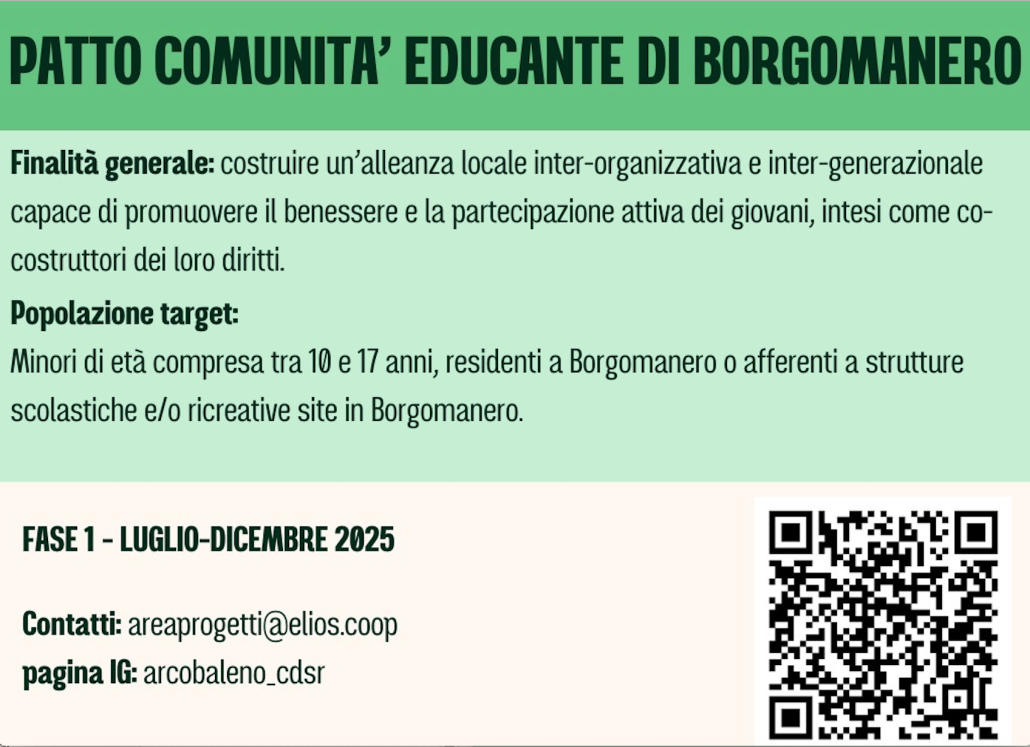 Borgomanero, 30 settembre 2025 – Si è svolto presso l’Oratorio di San Marco il primo incontro del Patto della Comunità Educante di Borgomanero, iniziativa promossa nell’ambito del progetto “Un Arcobaleno di Salute” con il sostegno del Comune di Borgomanero e del Ciss.