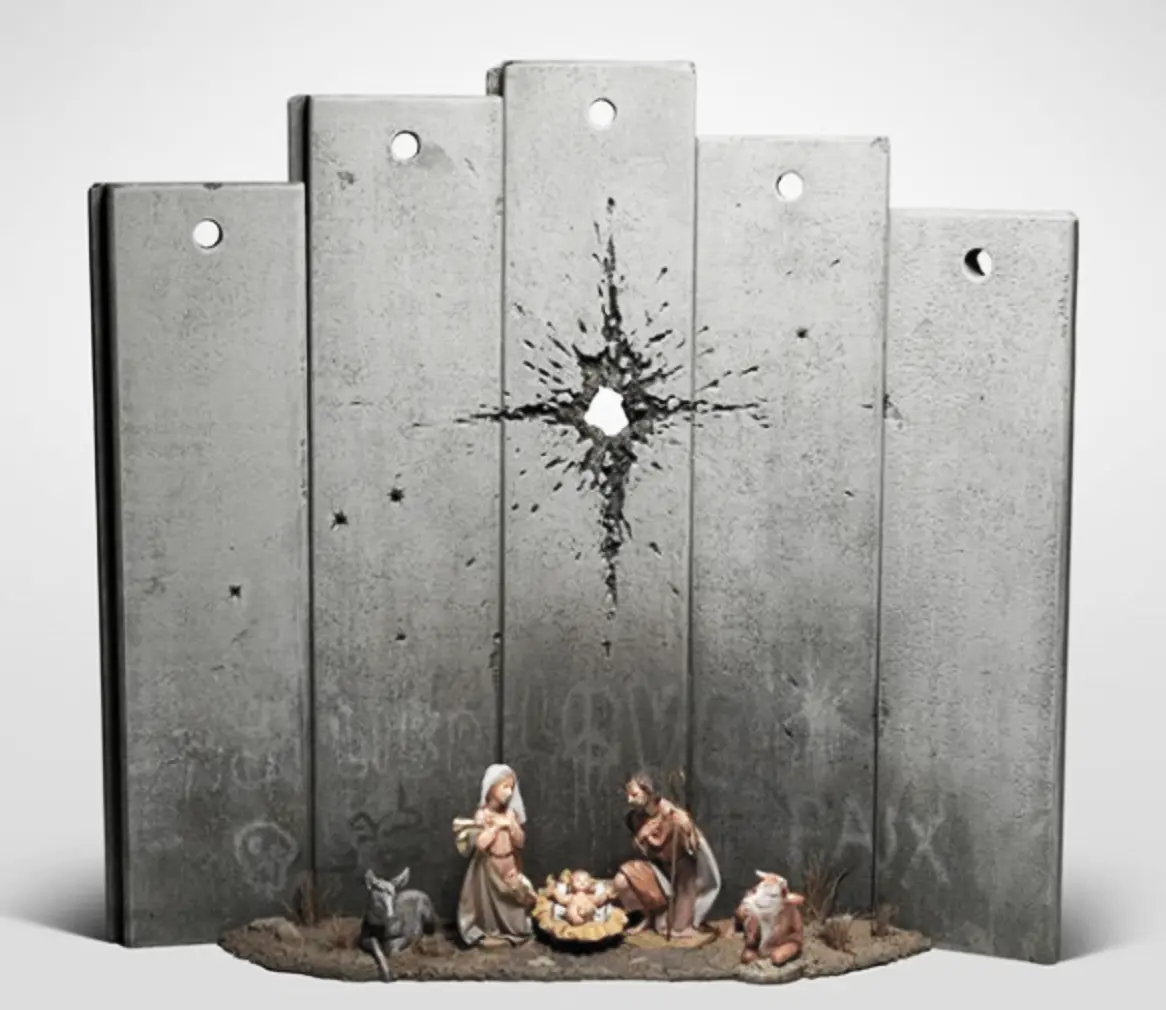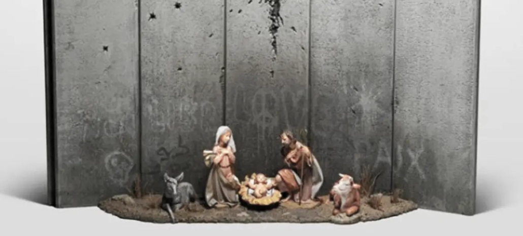 Il Natale di Banksy a Betlemme (2019) è l’opera dell’artista che colloca il presepe sotto un colpo di mortaio, sul muro simbolo di separazione tra Israele e Cisgiordania. È un’arte che ci ricorda la violazione di tante maternità ed infanzie dovute alle guerre a cui non dobbiamo abituarci.