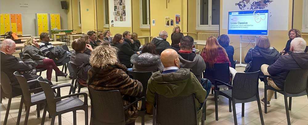 Un percorso culturale invece è stato organizzato per i genitori che hanno potuto incontrare alcuni docenti: si è messo in luce il valore della cultura umanistica, con una lettura da parte di alcune studentesse di Ulysses del poeta romantico Alfred Tennyson. Si sono distinte con una fluente pronuncia e doti interpretative Emma Rampani, Chiara Cerutti e Giulia Massarotti. La docente Laura Zabotto ha selezionato questa poesia perché emerge la figura di un uomo con la sete di conoscenza che non si arrende alla stanchezza della vecchiaia ma sottolinea l’importanza di una vita vissuta con intensità.