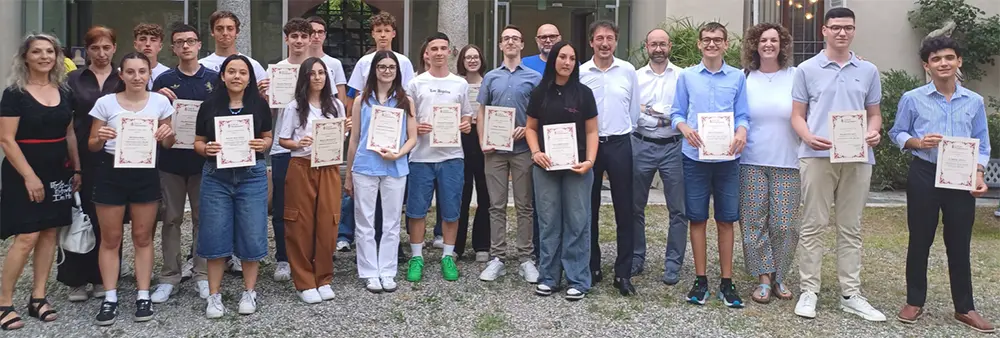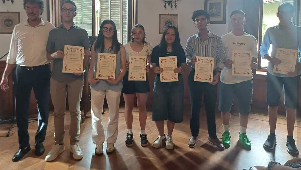 Lo Studente dell’anno è il concorso del Comune di Borgomanero che premia i migliori studenti borgomaneresi. Per il 2024/2025, ad ex equo, vincono il premio Studente dell’anno, con una media del 9,82, Lucrezia Caliendo e Fabio Travaini, entrambi dell’Iti Da Vinci. Sono stati premiati i migliori studenti di ciascun istituto: per il liceo classico Don Bosco Fabrizio Avico, per il liceo delle scienze umane economico sociali Don Bosco Federico Dulio, per il liceo scientifico Galilei Rebecca Creola, per il liceo delle scienze umane Galilei di Gozzano Matilda Kuci, per il liceo linguistico Galilei di Gozzano Letizia Borri Brunetto, per il liceo artistico Casorati di Romagnano Alicya Asia Gozzi e per l’Iti Bonfantini di Novara Thomas Valfredini. A Linda Guidetti un riconoscimento speciale (v. la foto in evidenza).